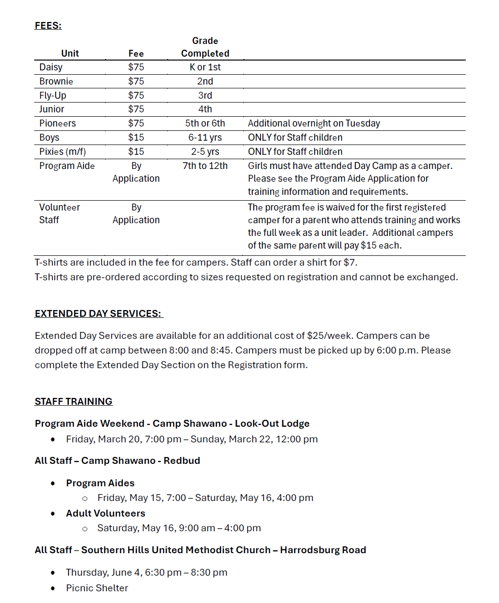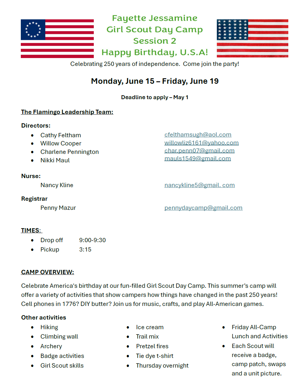 Registration Form - Staff and Campers